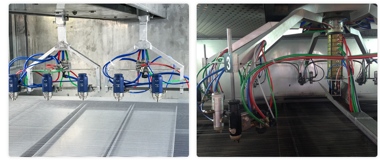 Le finissage est réalisé par application de couches successives de mélanges composés d’eau, de matières colorantes et de résines. Ces mélanges sont appliqués par pistoletage ou déposés sur le cuir par un cylindre gravé tournant sur un axe.