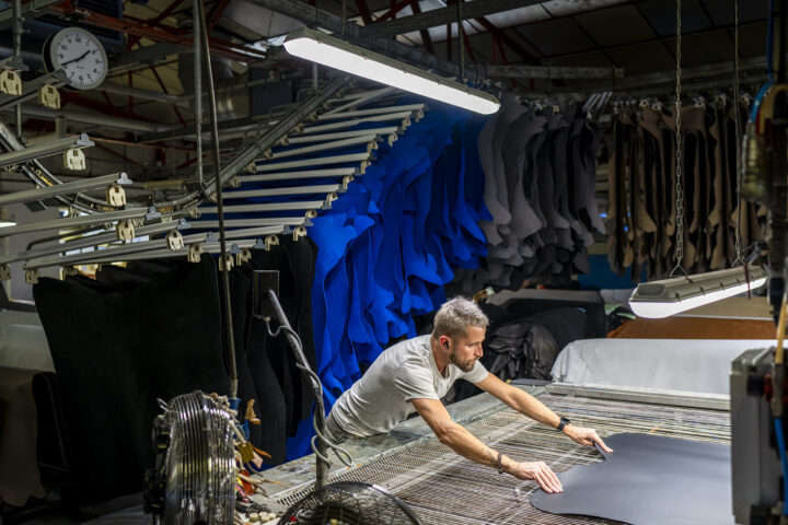 Le corroyage est une étape décisive qui permet d’obtenir les caractéristiques spécifiques du cuir en termes d’épaisseur, de souplesse, de résistance et de couleur, en respectant les critères du cahier des charges.