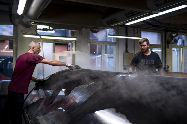 Le satinage sert à aplanir la surface du cuir à l’aide d’une plaque lisse.